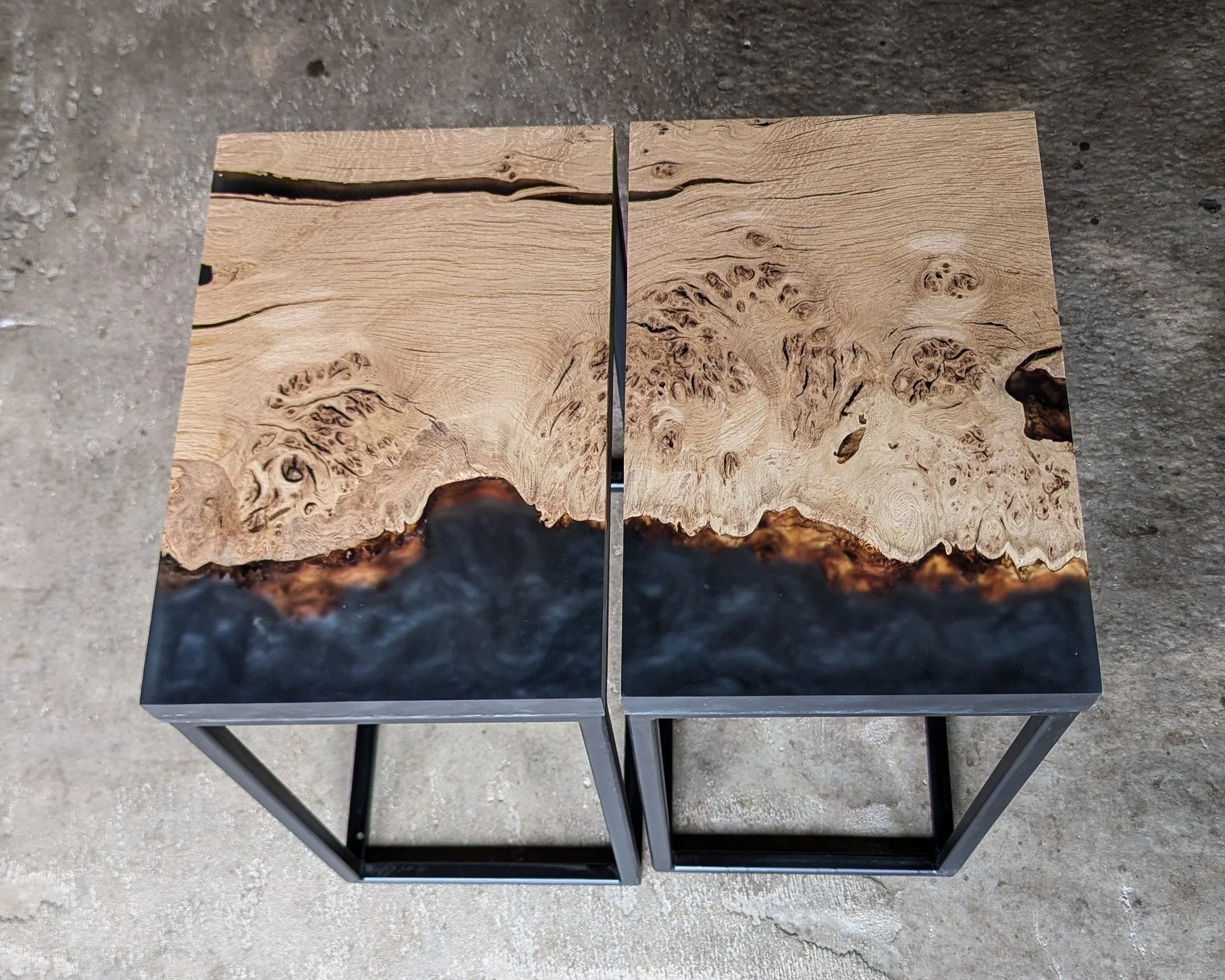 Handcrafted Luxury: The Pippy and Bur Oak Resin Fusion Side Tables